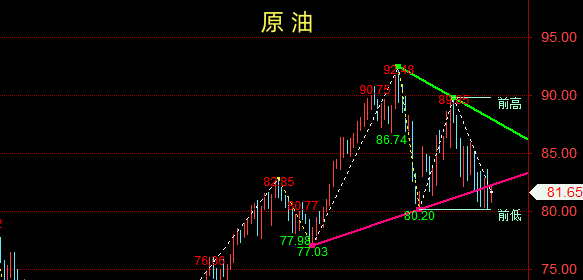 策略二:回调80.2-80.5附近多单进场,止损0.6个点,目标83.0-83.4一线。