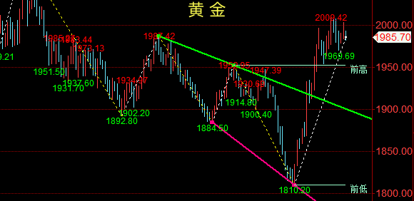 策略二:反弹1995-1992附近空单进场,止损6美金,目标1978-1975一线。