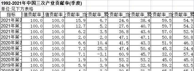 [经管数据集] 1992-2021年中国三次产业贡献率(季度) |