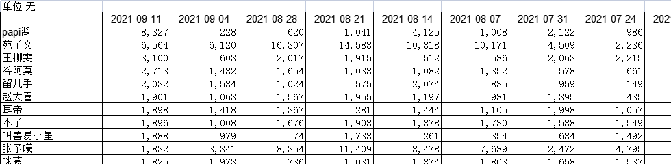 [经管数据集] 2017-2021年123粉丝网网络红人人气周榜 |