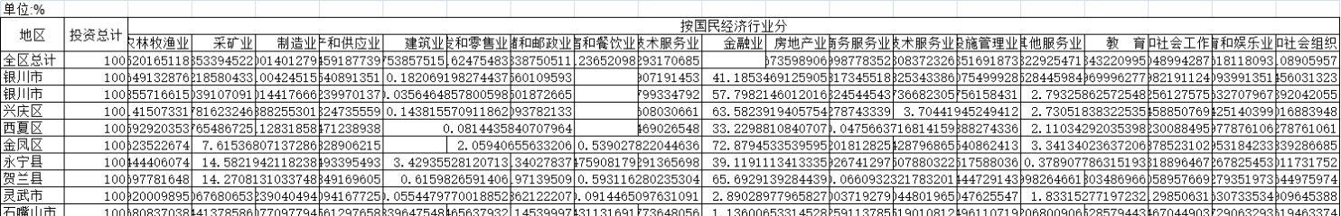[经管数据集] 截至2020年宁夏自治区各市县主要行业固定资产投资构成 |