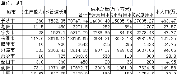 [经管数据集] 2020年湖南省城市供水 |