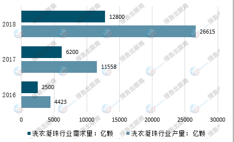 洗衣凝珠的使用也更加方便,只需将一颗凝珠放入洗衣机中即可完成洗涤过程,避免了洗衣粉造成的堵塞和洗衣液的浪费。气味芬芳,质地软滑浓稠适中,性质温和不伤衣物,特有的低泡浓缩锁色配方,更易漂洗,凝珠遇水即溶无残留,还能有效快速去除顽固污渍让衣物洁净如新。2018年我国洗衣凝珠行业产约1.28亿颗,需求量约2.66亿颗。