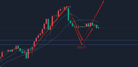建议原油回踩下方76.8-77分批多,止损75.7,目标78.3-78.5;(策略建议仅供参考,盈亏自负,做单严格做好风控,设置止损和目标位置,杜绝扛单)