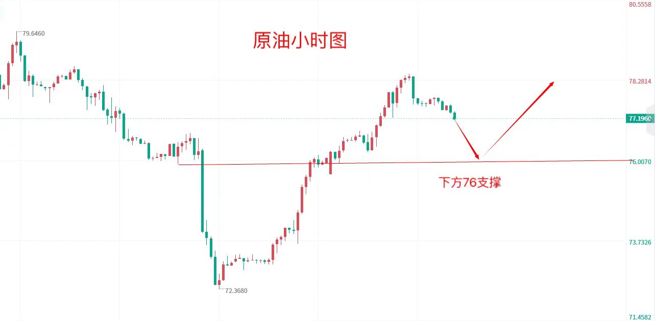 回踩76.8-77做多,止损0.6,目标77.8-78.5;