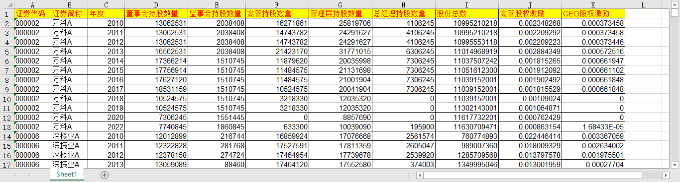 上市公司高管CEO股权激励2010-2022股份总数董监事会持高管管理层总经理持股数量.zip