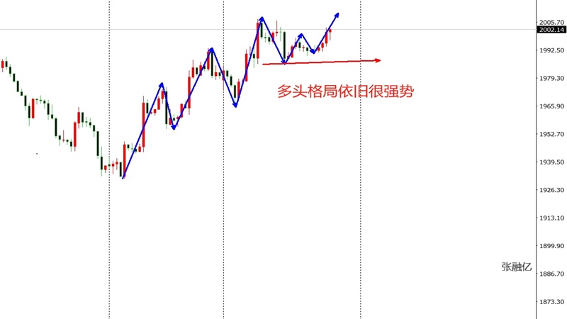 日线破新高之后,金价出现整理波动,结构上还是处于上涨格局,重点关注争夺2008高点是否突破,但由于空间和实体K线有所收敛,周线级别收录一根小阳线。4小时看多结构暂时不会改变,但后市涨跌还得再看短线多头延续的情况,如果行情持续不破2008,则继续维持拉锯震荡。目前下方短线支撑集中在1993-1988一带,这也是前一日的回撤低点,震荡空间稍有收敛,短线仍然会来回震荡拉锯。综合以上分析,张融亿认为:黄金震荡后收高,多头依旧处于强势中,下周操作上考虑回撤布局多单为主,高空为辅,上方关注2008-2020美元阻力,下方关注1993-1988美元支撑。