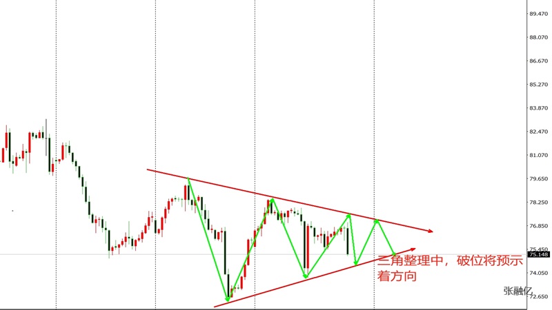 原油昨日开盘在76.附近,亚盘下跌走势,欧盘小区间内震荡走势当中,美盘开盘后冲高回撤,测试下方重要支撑位置75.0一线后开始反弹上涨收盘,日线收取大阴线走势。日线上看布林带呈现收口的运行状态,K线低位连续的反弹上涨,MA5以及MA10均线开始拐头向下发散运行走势,MACD能量柱缩量走势当中,KDJ指标死叉,日线大周期看原油出现了遇阻迹象。短周期看布林带走平,K线测试上方阻力位后出现遇阻,MA5以及MA10均线在中轨位置开始拐头向下运行状态,MACD能量柱有所缩减走势,KDJ指标死叉,短周期看原油小涨大跌,向下动能出现加强,下周关注是否出现延续下破走势。综合以上分析,张融亿认为:原油在处于一个三角整理中,上方阻力位在78.5-77.1形成向下趋势,下周操作上考虑反弹做空为主,低多为辅,上方关注77.0-78.0美元阻力,下方关注74.0-73.5美元支撑,破位下看。