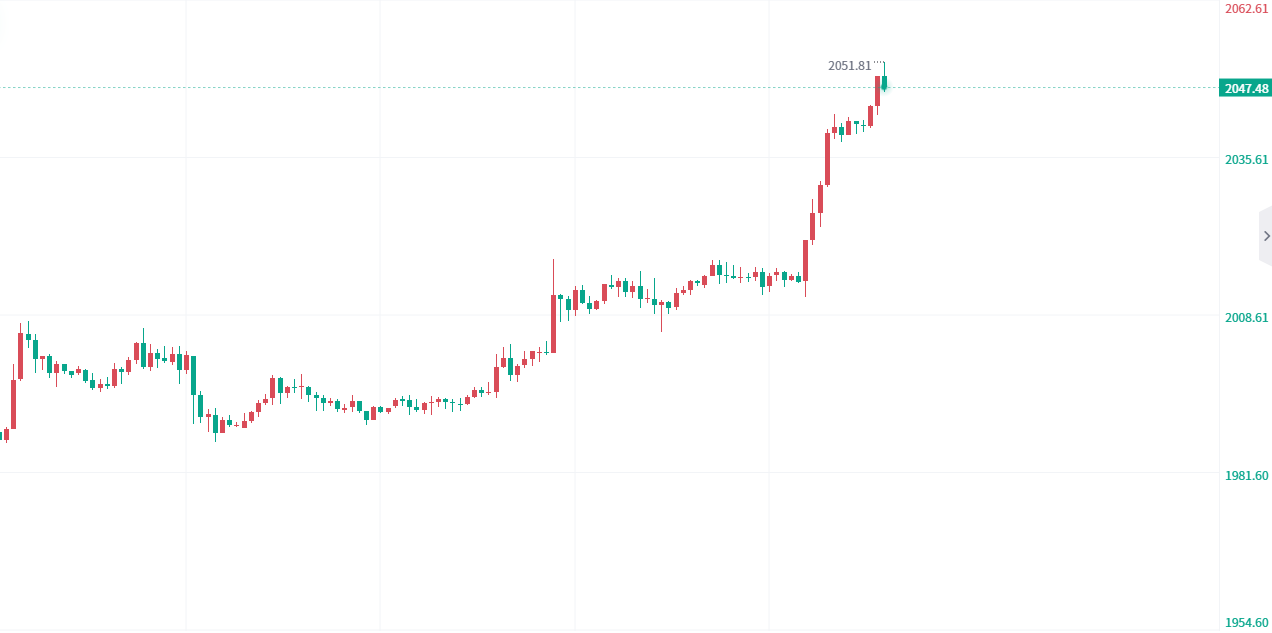 本周整个黄金市场多头一片沸腾,金价从周一的2000飙到2052,多头来势汹汹,截止目前为止已经上涨将近52美金,但是黄金现在根本就停不下来,停不下来;