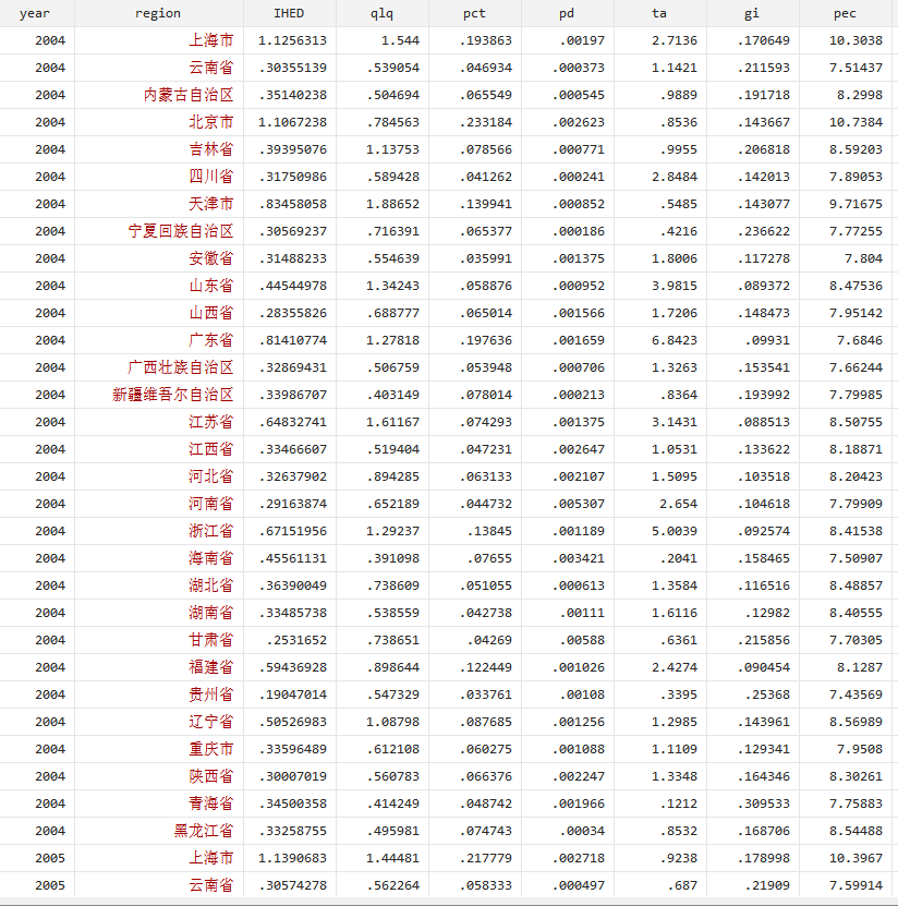 year、region、IHED、qlq、pct、pd、ta、gi、pec、comp、md、pa
