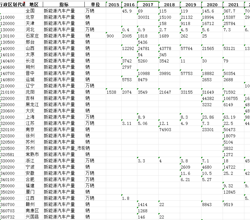 行政区划代码、地区、指标、单位、2015、2016、2017、2018、2019、2020、2021、2022、数据来源。