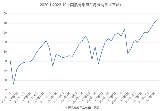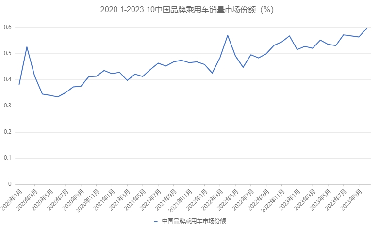 2020.1-2023.10中国品牌乘用车销量市场份额