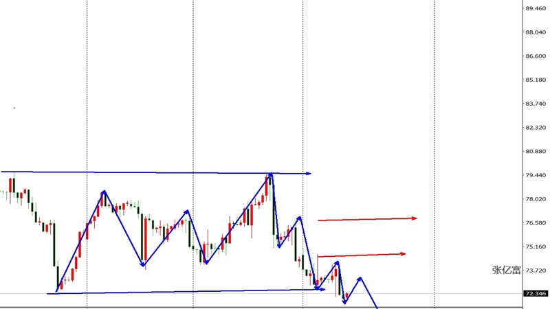 昨日美原油市场延续回落过程,早盘开盘在73.28美元/桶,后行情小幅拉升给出74.11美元/桶,后行情强势回落,日线最低给到了72.02美元/桶,后行情大区间整理,日线最收线在了72.09美元/桶,后行情以一根上影线很长的中阴线收线,而这样的形态收尾后,日线延续看跌思路。4小时图横向拉锯整理洗盘,在74.0构造出平台性的阻力,今日操作在74.0下方择机看空即可,台阶式的震荡下跌,次高点不破,趋势不改,目前逼近前期低点有下破之势。综合以上分析,张亿富认为:原油延续偏空运行中,反弹不过高,空头趋势将继续,今日操作上考虑反弹做空为主,低多代次,上方关注73.0-74.1美元阻力,下方关注71.0-70.0美元支撑。