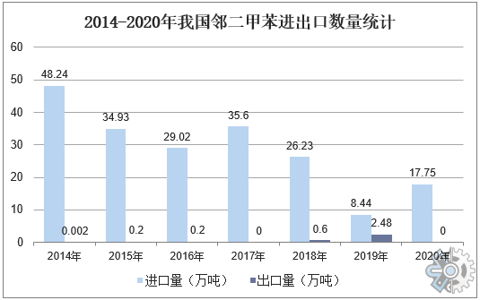 随着世界各国对于环保要求的提高和技术的不断创新,邻二甲苯的需求量在近年来持续增加。作为涂料、塑料等行业的重要原料,邻二甲苯的市场需求量也随之增加。根据报告统计数据,全球邻二甲苯市场在过去十年中年均增长率超过5%,预计未来几年内市场规模将继续扩大。目前我国大部分邻二甲苯需要依靠进口,进口需求量较大,导致邻二甲苯生产成本增加,据统计,2020年我国邻二甲苯进口量为17.75万吨,同比增长110.3%。