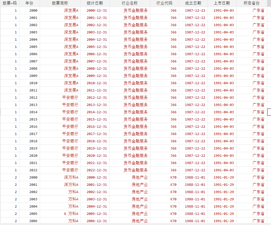 股票代码、股票简称、统计截止日期、行业名称、行业代码、公司成立日期、首次上市日期、所属省份、所属城市、上市状态。