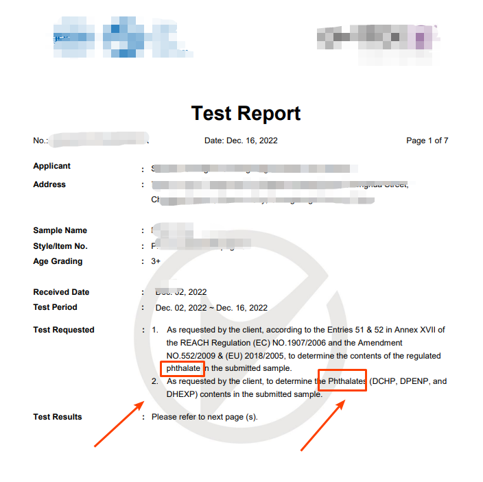 2、应该包含邻苯二甲酸盐(phthalates)测试