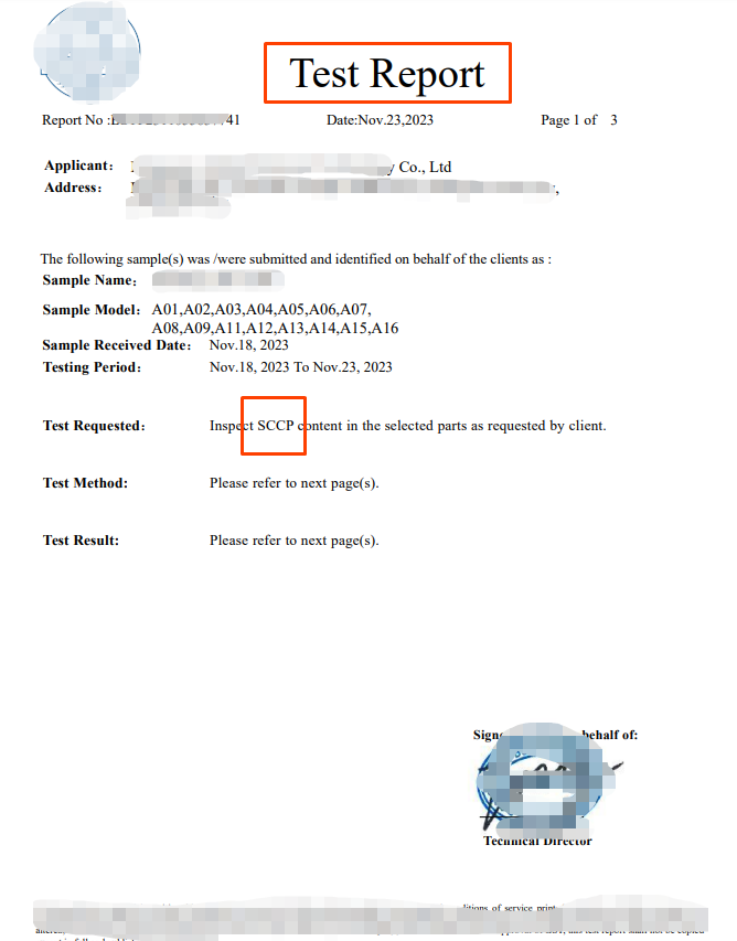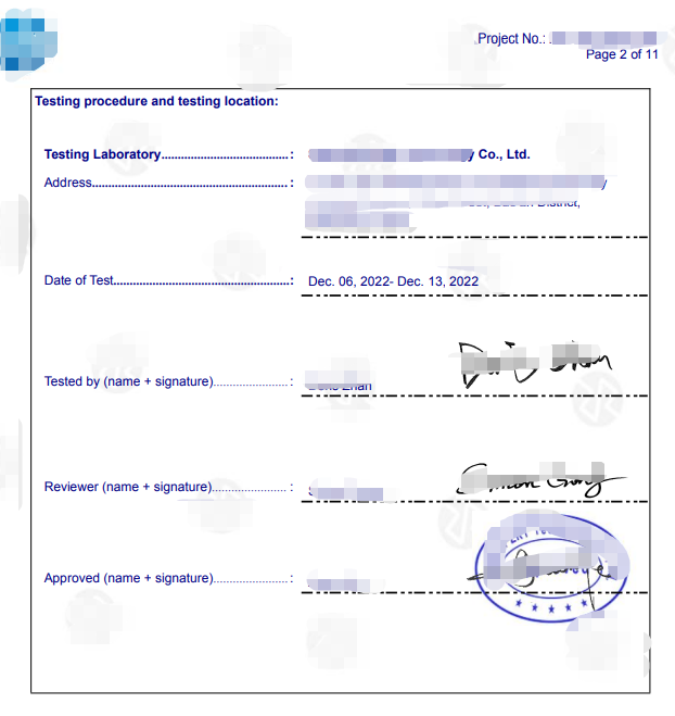 1. 实验室出具的官方证书/检测报告,含检测实验室名称、签字或盖章