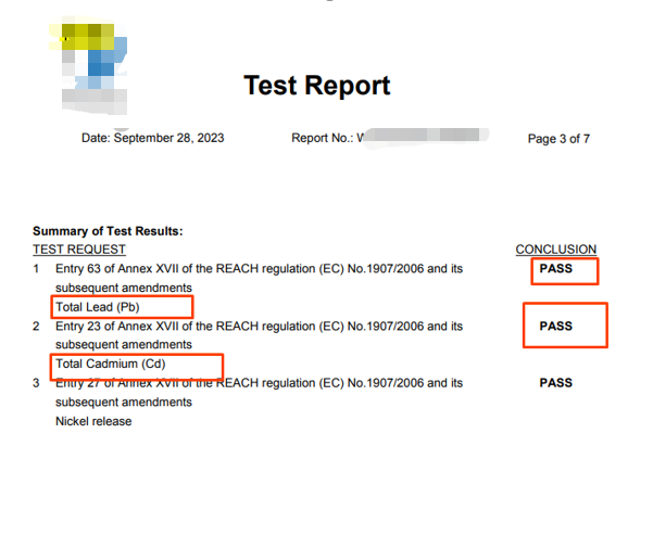3、应进行镉含量(总镉含量)测试Cadmium content (total Cadmium content) test