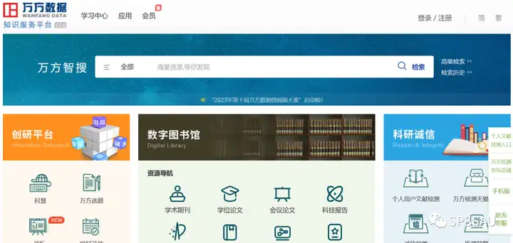 万方数据库是由万方数据公司开发的,涵盖期刊、会议纪要、论文、学术成果、学术会议论文的大型网络数据库。万方数据库以学术、技术、政策指导类全文文献、数据论文等为主,内容涉及自然科学和社会科学各个专业领域。
