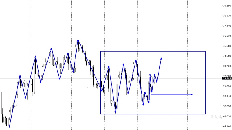 原油市场昨日开盘在70.83美元/桶,后行情先回落,日线最低给到了70.37美元/桶,后行情拉升,日线最高触及到了72.85美元/桶,后行情整理,日线最终收线在了72.12美元/桶,后行情以一根上影线稍长于下影线的大阳线收线,而这样的形态收尾后,今日的行情延续区间。4小时图暂时维稳69.20低点之上震荡,此前虽然下挫,但低点未失,弱势能延续,昨日反弹收复部分失地,目前重新回到中轨附近震荡。4小时图布林道收口当中,短期围绕70.0-74.30区间内收缩。多空争夺胶着。综合以上分析,张亿富认为:原油处于宽幅震荡中,现阶段处于70.1-71.0双转折点支撑,后市操作上考虑回撤布局多单为主,高空为辅,上方关注73.2-73.8美元阻力,下方关注71.6-71.0美元支撑。