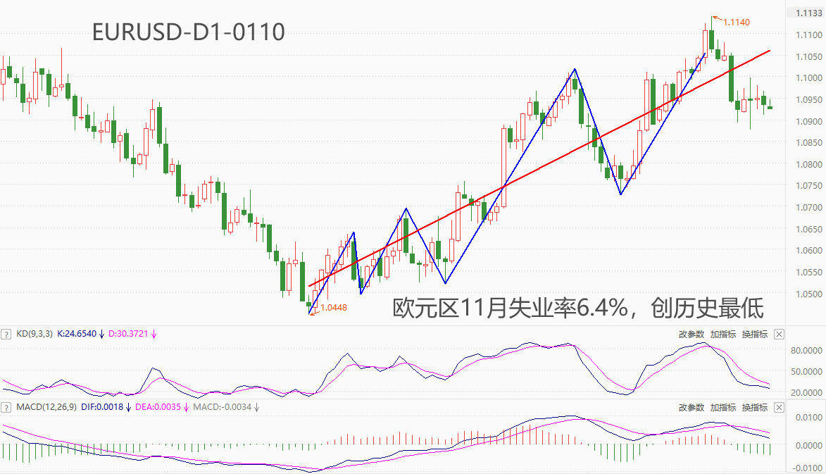 ATFX汇市:据欧盟统计局数据,欧元区十一月失业率6.4%,低于前值和预期值6.5%,持平于2023年6月份失业率,创出历史最低纪录。与此同时欧元区十二月CPI年率初值,从2.4%升高至2.9%。失业率降低,薪资收入提高,购买力增强,从而导致通胀率上升,这一传导链条符合经济学逻辑。同时,创出历史最低纪录的失业率,意味着欧元区并没有出现此前市场所预期的“经济硬着陆”的问题,时间点自然会大幅推迟。2024年的八个交易日,欧元兑美元累计贬值幅度已经达到1.03%, 美元指数的升值幅度也达到了1.24%,行情面正在按照“降息预期减弱”的逻辑在运行。