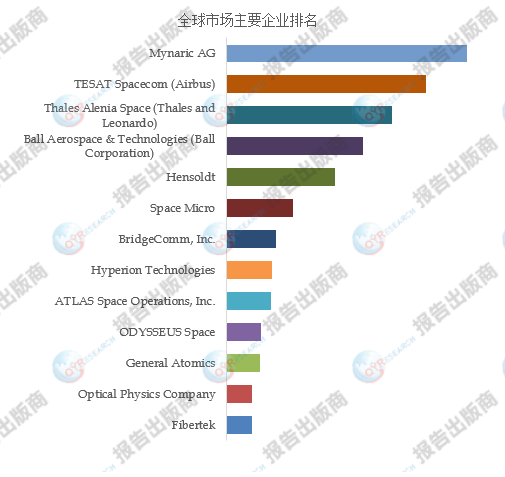 全球范围内激光通信终端(LCT)生产商主要包括Mynaric AG、TESAT Spacecom (Airbus)、Thales Alenia Space (Thales and Leonardo)、Ball Aerospace & Technologies (Ball Corporation)、Hensoldt、Space Micro、BridgeComm, Inc.、Hyperion Technologies、ATLAS Space Operations, Inc.、ODYSSEUS Space等。2021年,全球前五大厂商占有大约62.0%的市场份额。