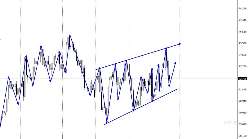 原油今日出现了高位下破走势,高点在73.0一带遇阻下行,最低点触及71.227美元企稳震荡。日线探高收低收成小阴十字,阴阳互换的震荡拉锯并未改变,虽然有探高,但没有持续性收高。日线一阴一阳的洗盘走法。本周仍将持续有待打破僵局。4小时图探高回测,突破上轨又回归上轨之下,先向下轨寻求支撑,启稳后则继续看拉锯震荡。综合以上分析,张亿富认为:原油快速下破后,寻觅支撑,重点关注71.2水平,预期企稳反弹,后市操作上考虑回撤布局多单为主,高空为辅,上方关注73.0-74.5美元阻力,下方关注71.2-70.5美元支撑。