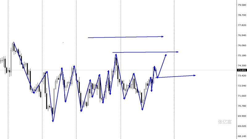 原油市场昨日开盘在72.61美元/桶,后行情先回落,日线最低给到了71.92美元/桶,后行情强势拉升,日线最高触及到了74.08美元/桶,后行情整理,日线最终收线在了73.75美元/桶,后行情以一根下影线长于上影线的大阳线收线,而这样的形态收尾后,原油触底反弹。4小时图昨日回踩中轨处启稳,守住72.20一线再摸高,短线结构还处于上升摸高当中。小时图破高点的支撑与中轨重合在73.30-73.50。有望形成支撑效果。综合以上分析,张亿富认为:原油上涨破高,有望多头延续,今日操作上考虑回撤布局多单为主,高空为辅,上方关注75.2-75.9美元阻力,下方关注73.3-72.2美元支撑。