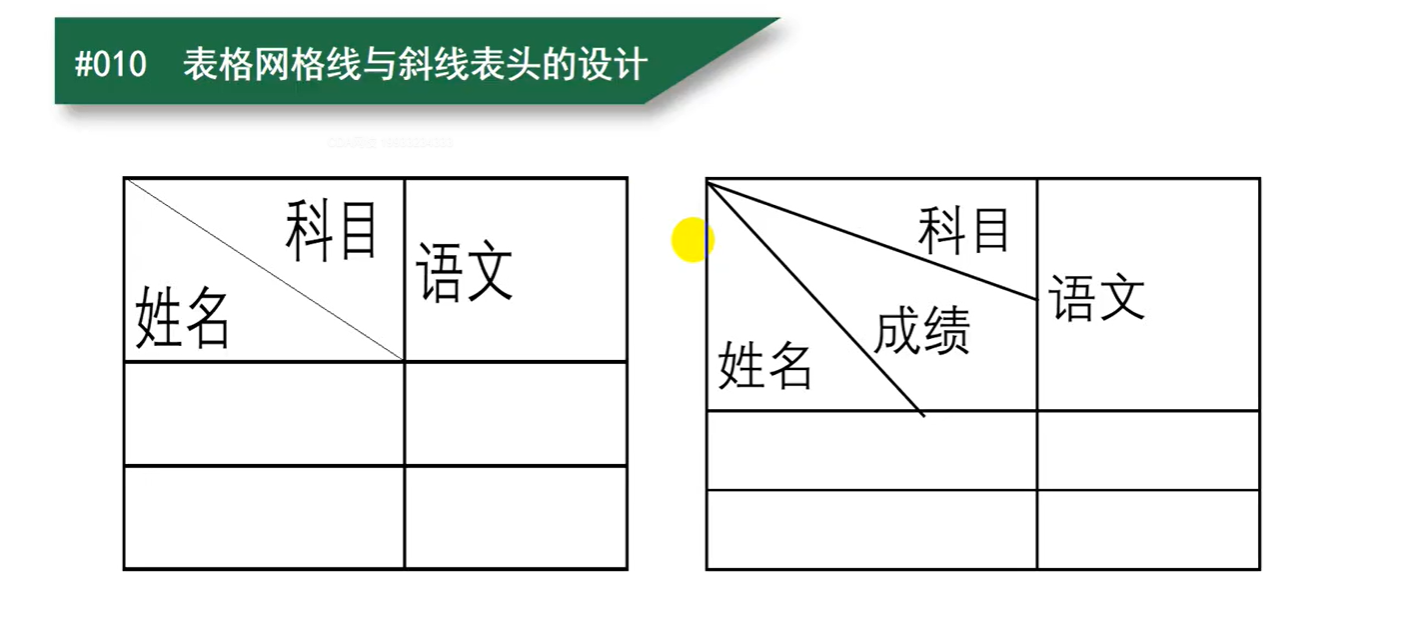 - 课时11:表格网格线与斜线表头的设计