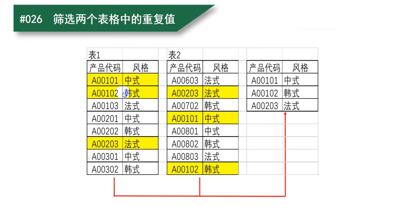- 课时27:筛选两个表格中的重复值