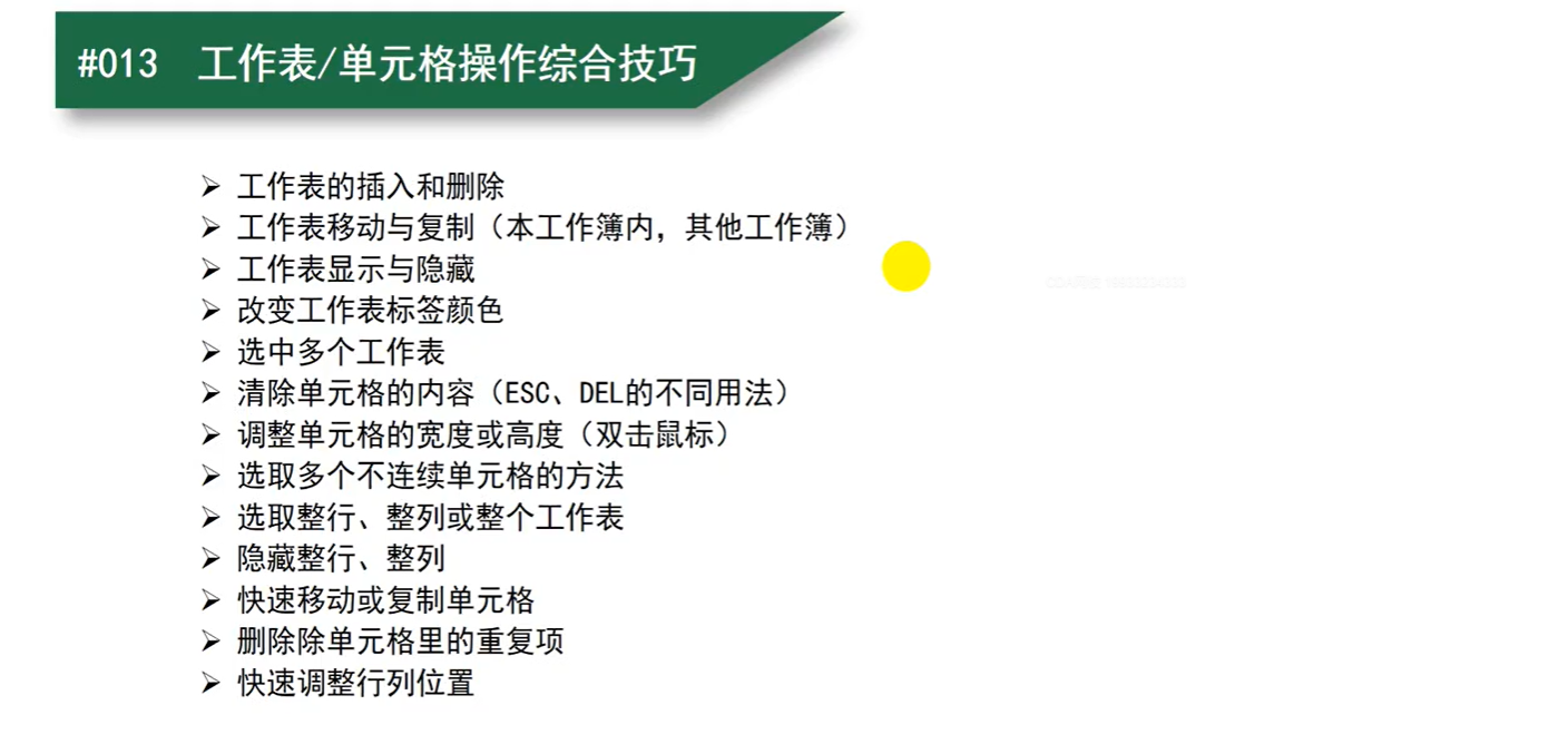 - 课时14:工作表与单元格操作综合技巧