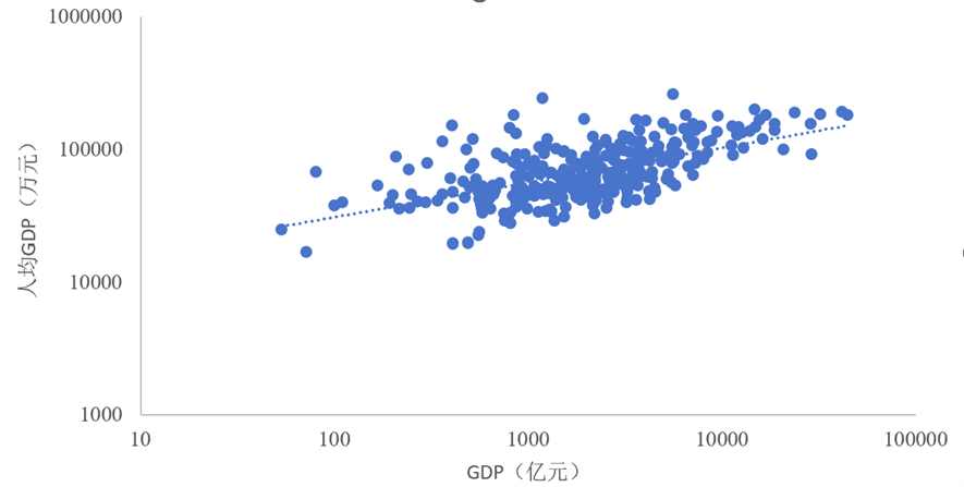 图1 我国337个城市GDP与人均GDP的关系