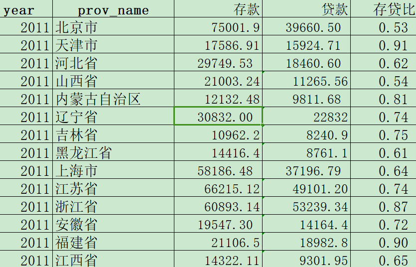 全国各省存款、贷款与存贷比