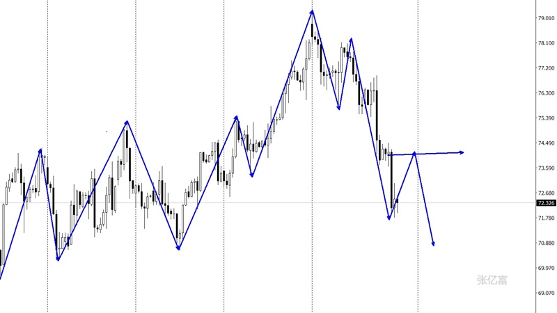 美原油市场上周高开在78.64美元/盎司,后行情先拉升,周线最高触及到了81.373美元/盎司,后行情受到本轮回落斐波那契50关口压力强势回落,到周五周线最低给到了71.646美元/盎司,后行情整理,周线最终收线在了72.248美元/盎司,后行情以一根上影线很长的大阴线收线,这样收尾后原油延续承压迹象。4小时图一波台阶式的回吐,此前破高后又回归高点之下,且在弱势向下轨靠近。宽幅拉锯是近期的主格调,上轨靠近下轨,再次测试下轨的支撑强度,目前短线先看回落。综合以上分析,张亿富认为:原油运行在空头趋势通道中,周一操作上考虑反弹做空为主,低多为辅,上方关注73.5-74.1美元阻力,下方关注71.0-70.7美元支撑。