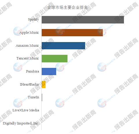 全球范围内网络电台生产商主要包括Spotify、Apple Music、Amazon Music、Tencent Music、Pandora等。2021年,全球前四大厂商占有大约68.0%的市场份额。