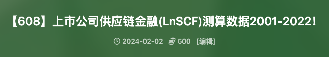 2001-2022年上市公司供应链金融(LnSCF)测算数据