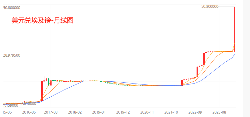 技术角度看,美元兑埃及镑的月线走势图呈现出“台阶状”,每隔一段时间,横盘震荡的汇率会上一个大台阶,2016年至今,已经上去五个大台阶。本月的“台阶”幅度最大。考虑到埃及镑的汇率已经由市场定价,未来这种“台阶状”的埃及镑单边贬值走势或将出现转机。