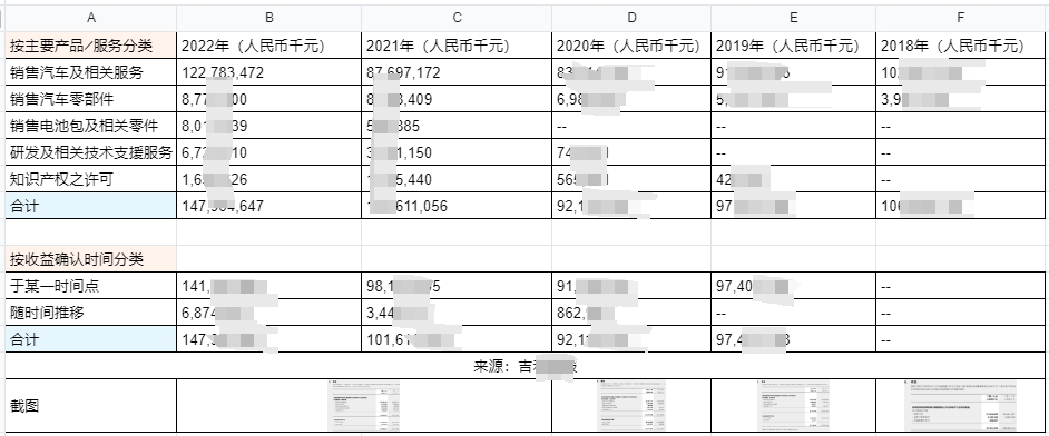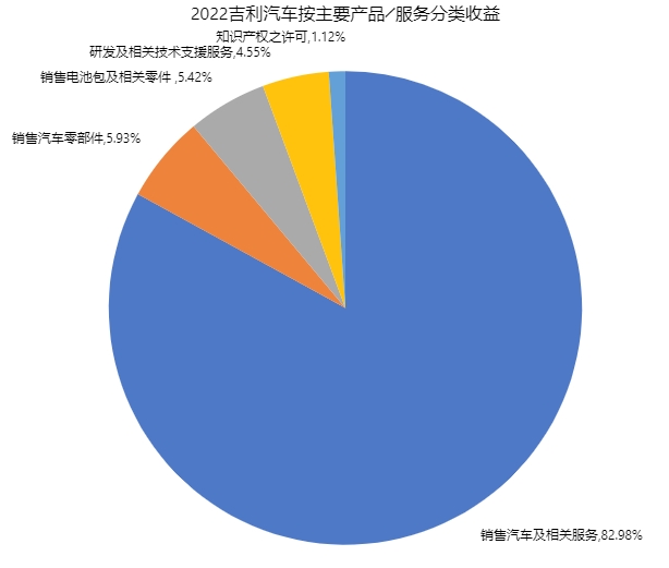 - 2018-2022吉利汽车按主要产品╱服务分类收益