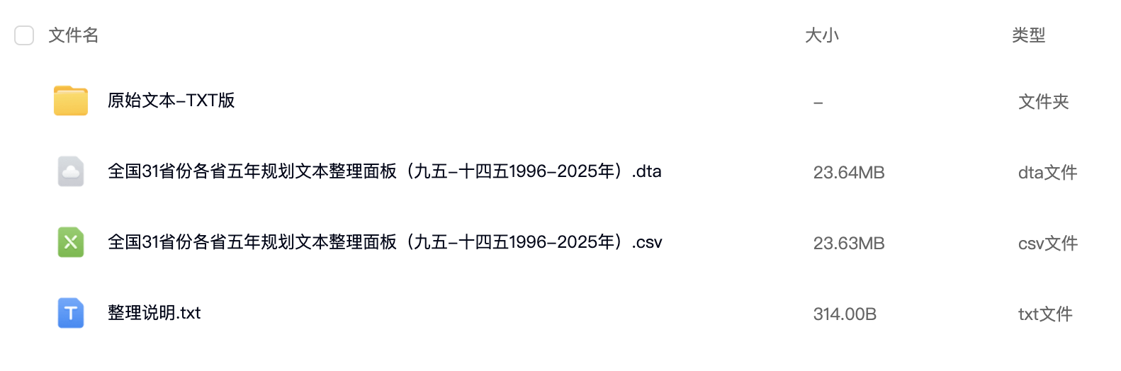 4、数据格式:Stata+CSV格式面板数据 + 原始TXT文本