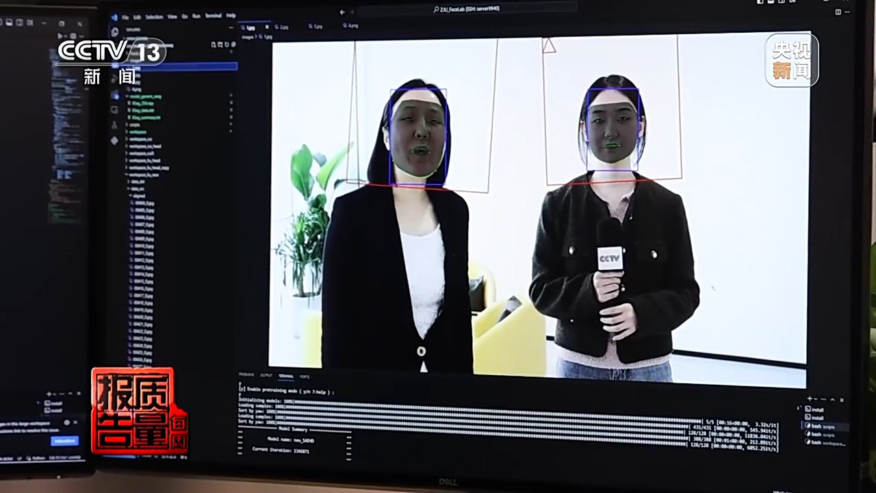 画面中,这位充当总台记者替身的姑娘实际上是浙江大学网络空间安全学院的学生小刘博士。在视频中,通过AI技术,浙大的研究人员成功将记者的面部特征移植到了刘博士的脸上,并对刘博士的声音也进行了改造,这样就合成出了“AI换脸”版的所谓总台记者。