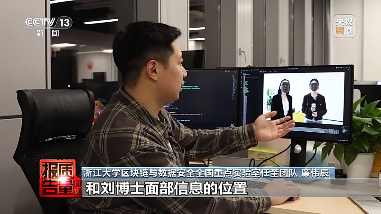 记者近日来到了浙江大学区块链与数据安全全国重点实验室。在这里,任奎教授团队的研究人员让记者体验了一回“AI换脸”。