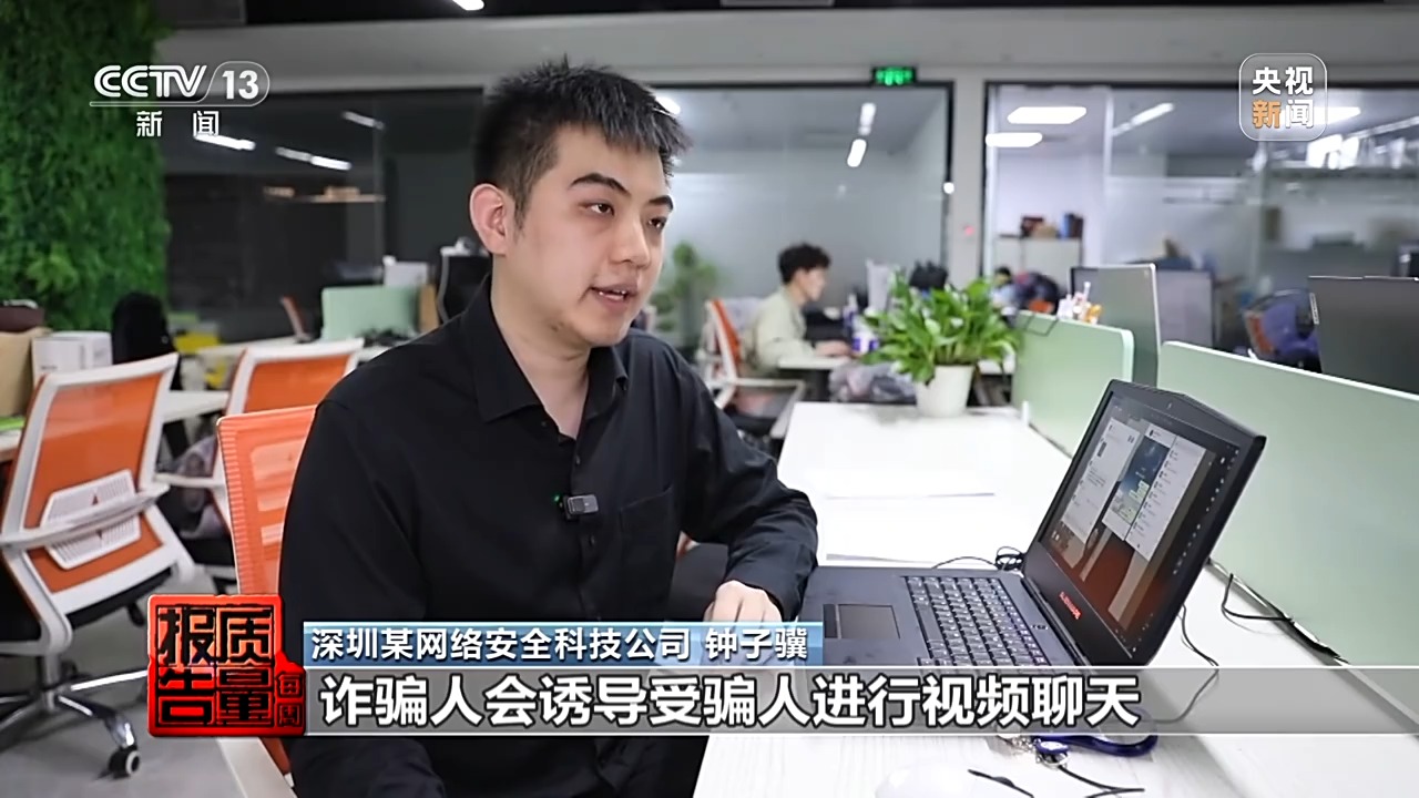 深圳某网络安全科技公司钟子骥:诈骗人会诱导受骗人进行视频聊天,然后通过这些软件截取受害人的面部特征以及外貌,通过AI合成了一些黄色的视频,投放到他自制的App里。在这个App里有数十万的用户,最终通过刚才我们说的这种方式实施诈骗、勒索,平均每个人的受骗金额都是有几十万。