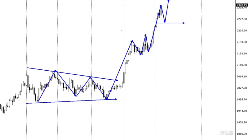 上周黄金市场周初开盘在2238.6美元/盎司,后行情小幅回踩2228美元/盎司,后行情一路震荡拉升,到周五行情最高触及到了2330.7美元/盎司,后行情整理,周线最终收线在了2328.25美元/盎司,后行情承压整理,周线最终收线在了2328.2美元/盎司,后行情以一根下影线稍长的大阳线收线,而这样的形态收尾后,本周依旧维持强势。4小时图尾部台阶上涨当中,目前还是强势行情。但此浪的空间释放较大,后市会伴随迂回震荡,一步一回头的走法,将波动基数拉大,不断创新高,同时也有伴随深度式的快速回落,也就是局部的探高回落走法,不过整体暂时还是保持了小台阶震荡慢上扬。综合以上分析,张亿富认为:黄金跳空低开,下方支撑较多,今日操作上考虑回撤布局多单为主,高空为辅,上方关注2330-2340美元/盎司阻力,下方关注2281-2270美元/盎司支撑。