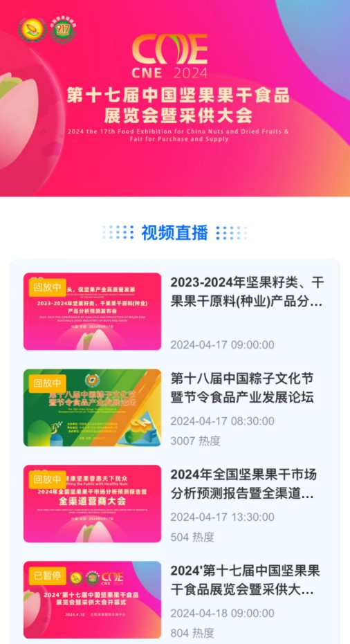 同期举办的还有“2024年全国坚果果干新设备、新技术、包装(包材)、辅配料、添加剂新品推介发布会”、“2024’第十七届中国坚果果干食品展览会参展产品推介线上直播”、“各省市坚果果干协会(商会)”、“各产业联盟交流会”以及企业专业交流会……新产品、新设备、新技术、营商环境、采供等多个领域的专业会议活动,覆盖坚果果干行业的核心焦点和热点话题,行业大咖、知名专家学者、生产加工企业、全渠道营商等汇聚一堂,与参与本届展会的参展商、采购商以及所有参观企业,共商共议发展大策大计,共建共享更加繁荣的坚果果干市场。