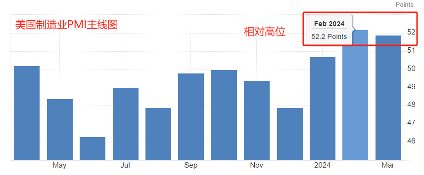 今日21:45,美国4月标普全球制造业PMI初值将发布,前值为51.9,预期值52,预期仅增加0.1个百分点。历史数据看,最近两月,制造业PMI数据处于相对高位,最大值52.2,最小值51.9,平均值52.05。对于PMI数据来说,50是荣枯线,数据高于荣枯线,则制造业扩张,反之则收缩。最近三个月,美国的PMI数据均高于荣枯线,意味着美国经济处于稳定的扩张状态。市场预期最新值将小幅向上波动0.1个百分点,符合历史数据特征,预期达成概率较高。