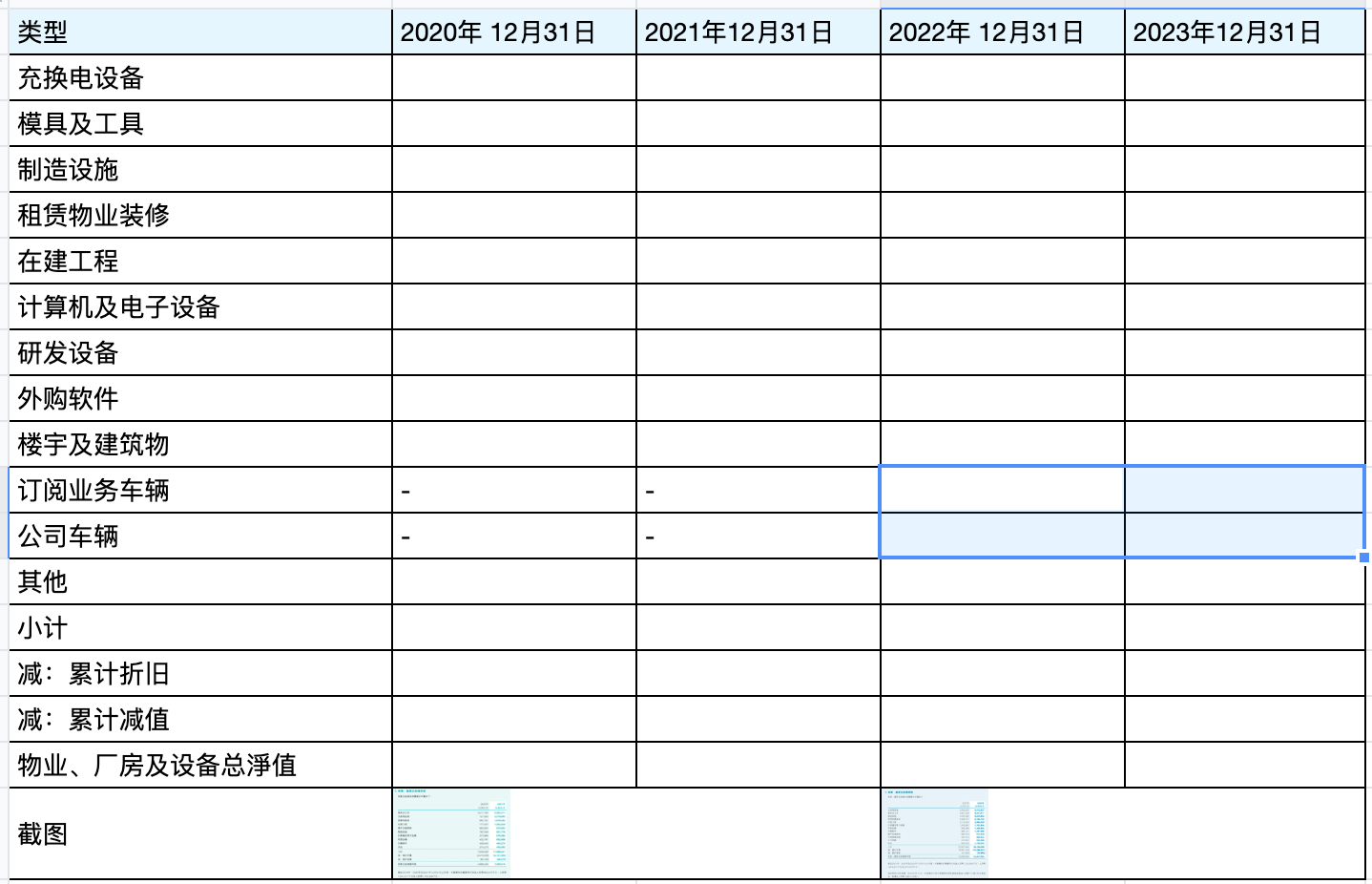 [公开数据] 2020-2023蔚来汽车物业/厂房/设备净值 |