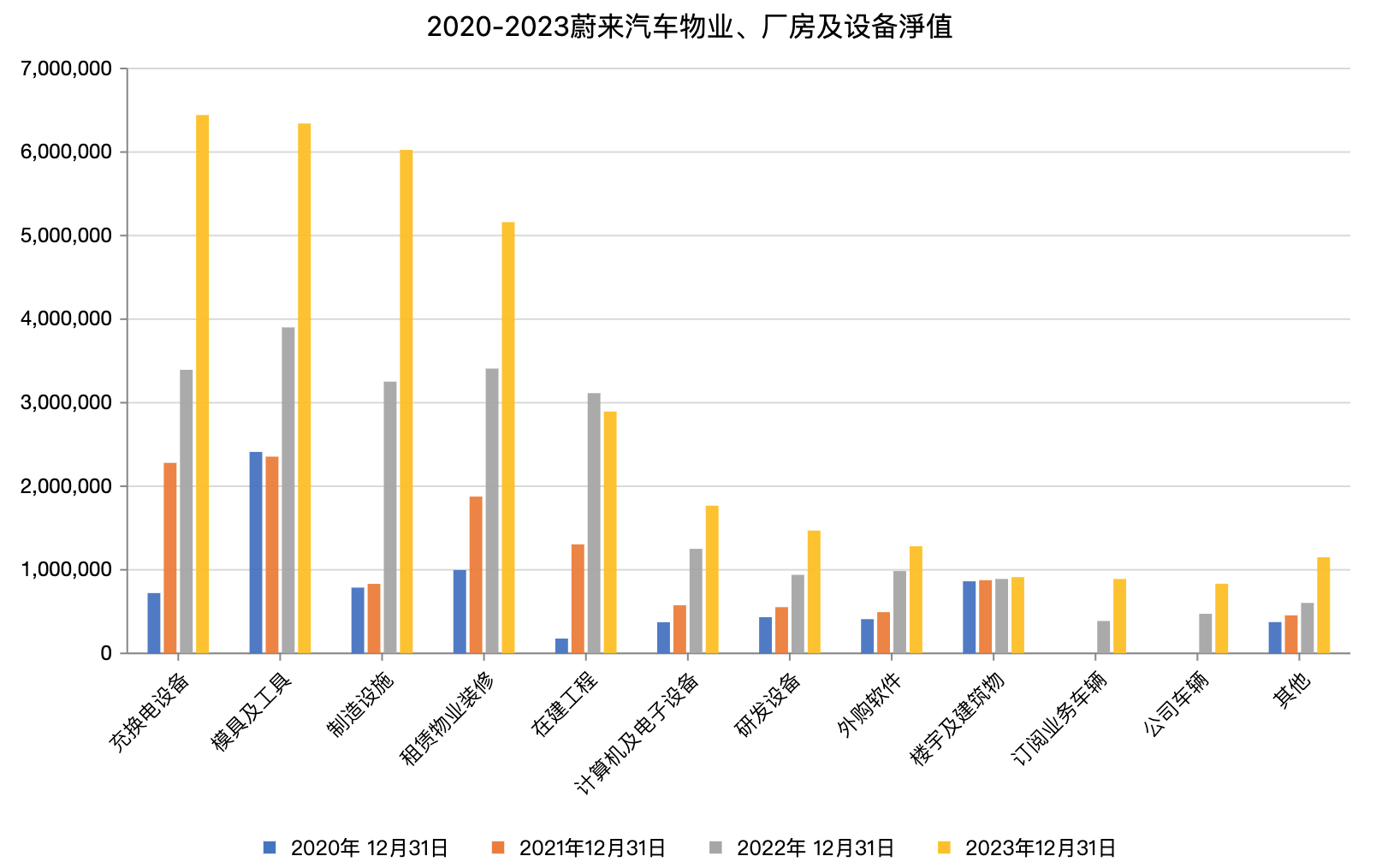 - 2020-2023蔚来汽车设备价值