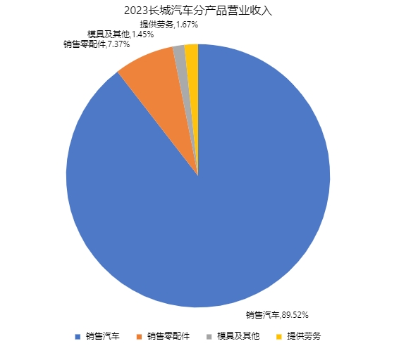2023长城汽车分产品营业收入