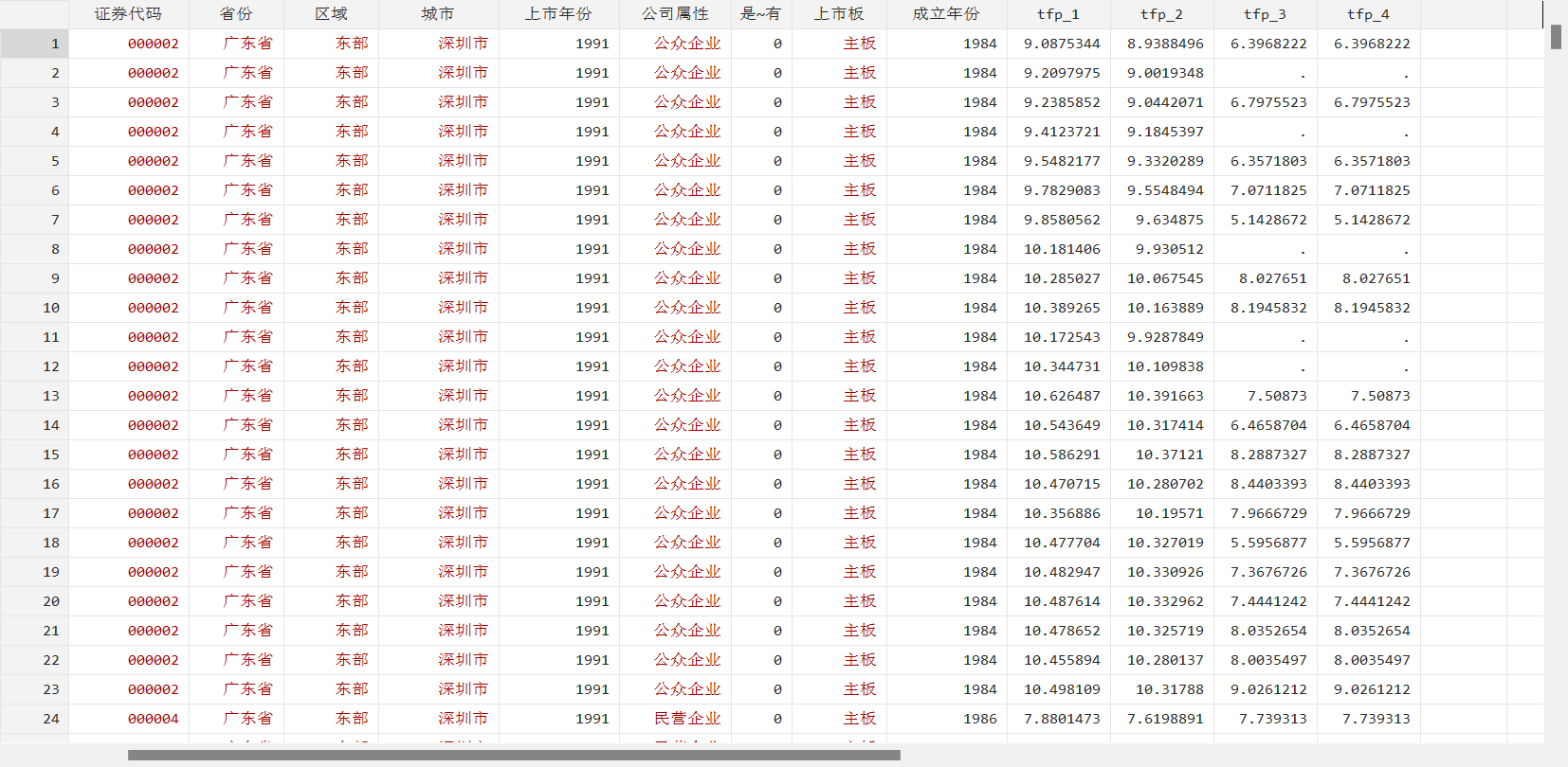 - 基本企业信息:stkcd year 省份 区域 城市 上市年份 公司属性 是否国有 上市板