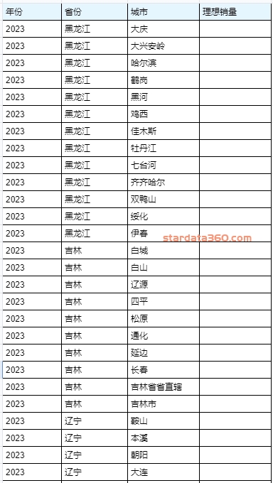 - 2019-2023理想汽车各地级市新能源汽车年度销量